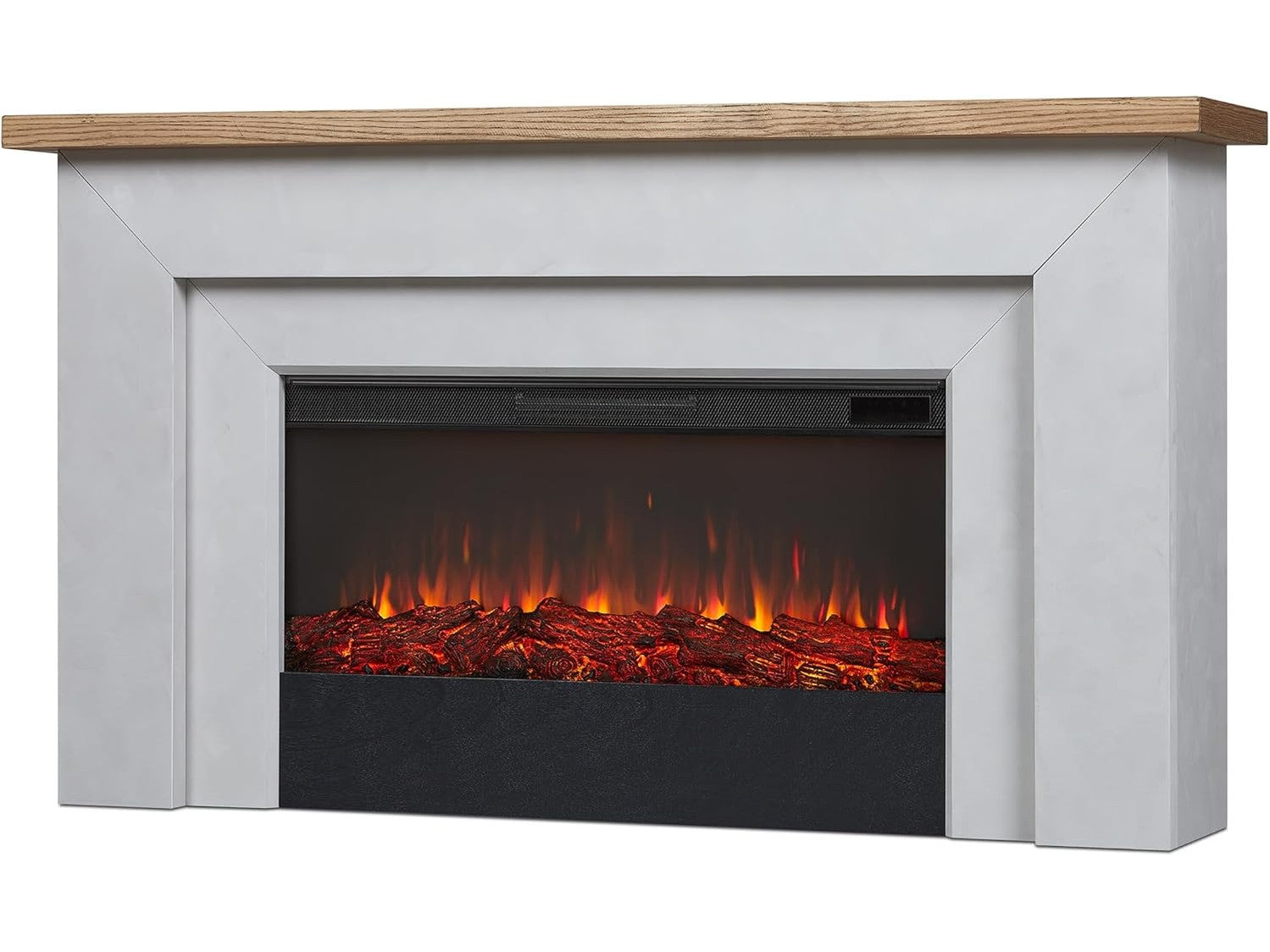 The Malie Landscape Electric Fireplace from the Real Flame VividFlame Series offers a sophisticated, modern heating solution without the need for vents or chimneys. Featuring a widescreen firebox with six flame colors and five brightness levels, it delivers an authentic flickering flame effect that enhances any space. The free-standing mantel with a real wood finish complements the Venetian plaster-inspired matte surround, adding elegant warmth to your decor. Adjustable thermostat, timer function, and automatic safety shutoff ensure precise control and safety. The heater can be turned off to enjoy the ambiance year-round.